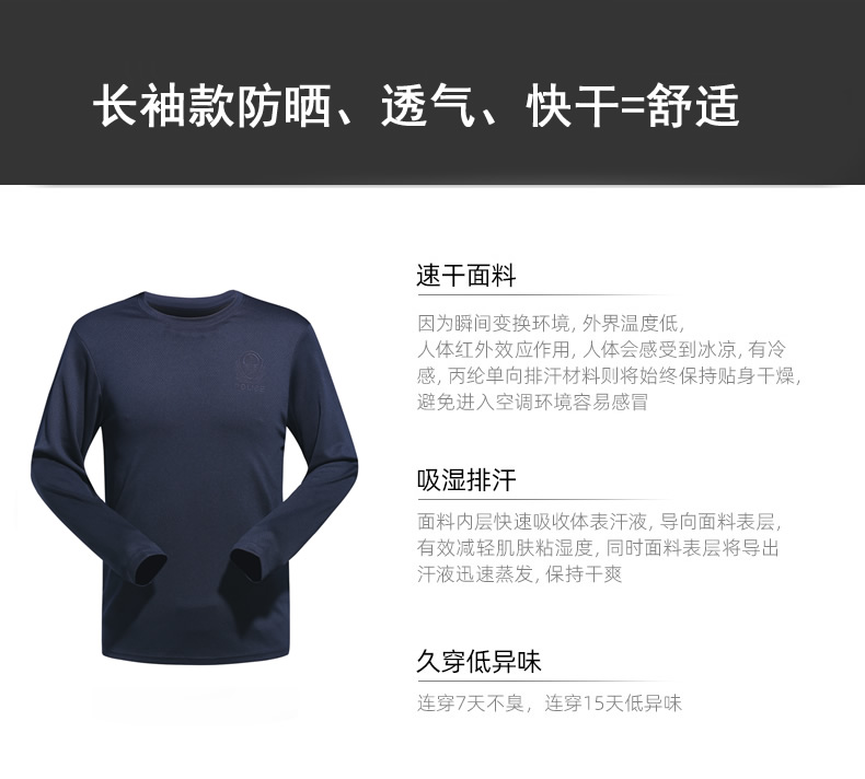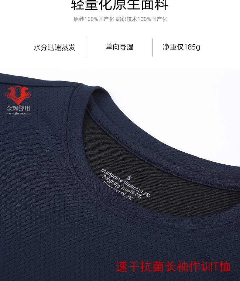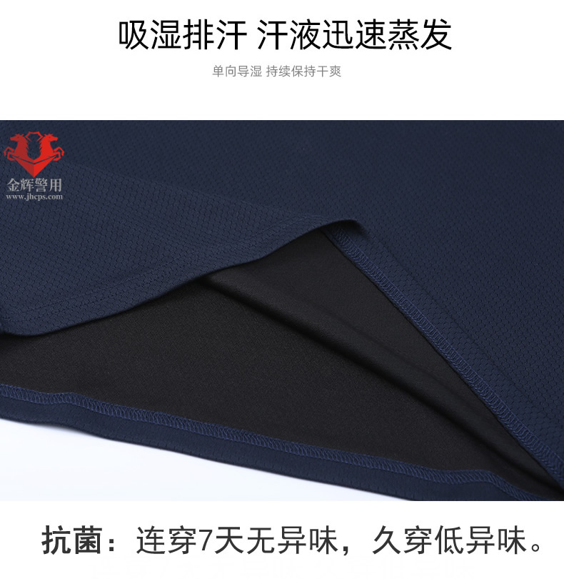 公安警用長袖T恤衫,材料為抗菌單導速幹麵料,具備防臭速幹等功能,長時間穿著或者出汗量大者更合適,透氣涼爽,麵料柔軟舒適。