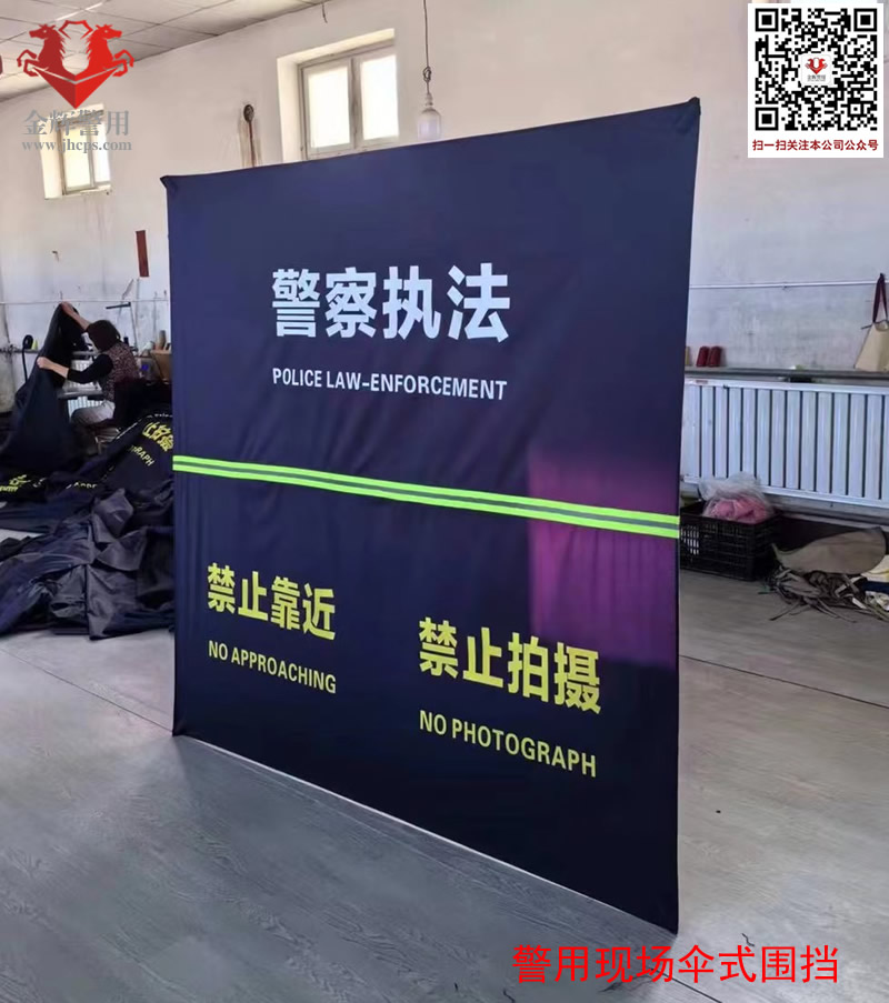 警用鋁合金傘式圍擋、收放(fàng)簡便,展開高1.95米,總高(gāo)2.35米,就是4平方每個。可(kě)根據單位需(xū)求定製文字。 主(zhǔ)杆 38圓 管(guǎn)壁1.2 傘股16圓 管壁1.0 傘式圍擋的杆子采取(qǔ)分體式可拆部件。 塑料(liào)件:ABS 傘布:280克滌(dí)綸布 Pu塗層 防潑水塗層 色牢度(dù):歐標4級 包裝尺寸:1米(mǐ)*20厘米*20厘米,立起(qǐ)來的邊高1.95米,總高2.35米,重量4.5公斤一個。