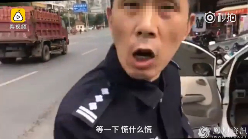 受到提醒後,該民警大聲喊 稱要“拿東西”、“換衣服”,等一下再說。