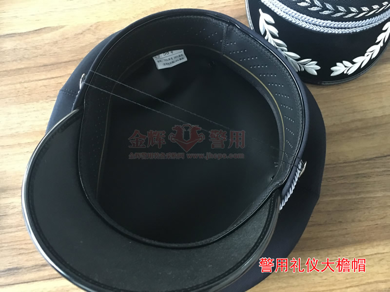 新款警察禮儀大簷帽是在99式警察(chá)大簷帽的基礎上改良,其中最明顯的地方是絨麵帽簷添加了橄欖(lǎn)枝,橄欖枝象征和(hé)平(píng)和莊嚴的(de)警察形象。新款警察禮儀大簷帽藏藍色款式和白色款式,按頭圍配發。