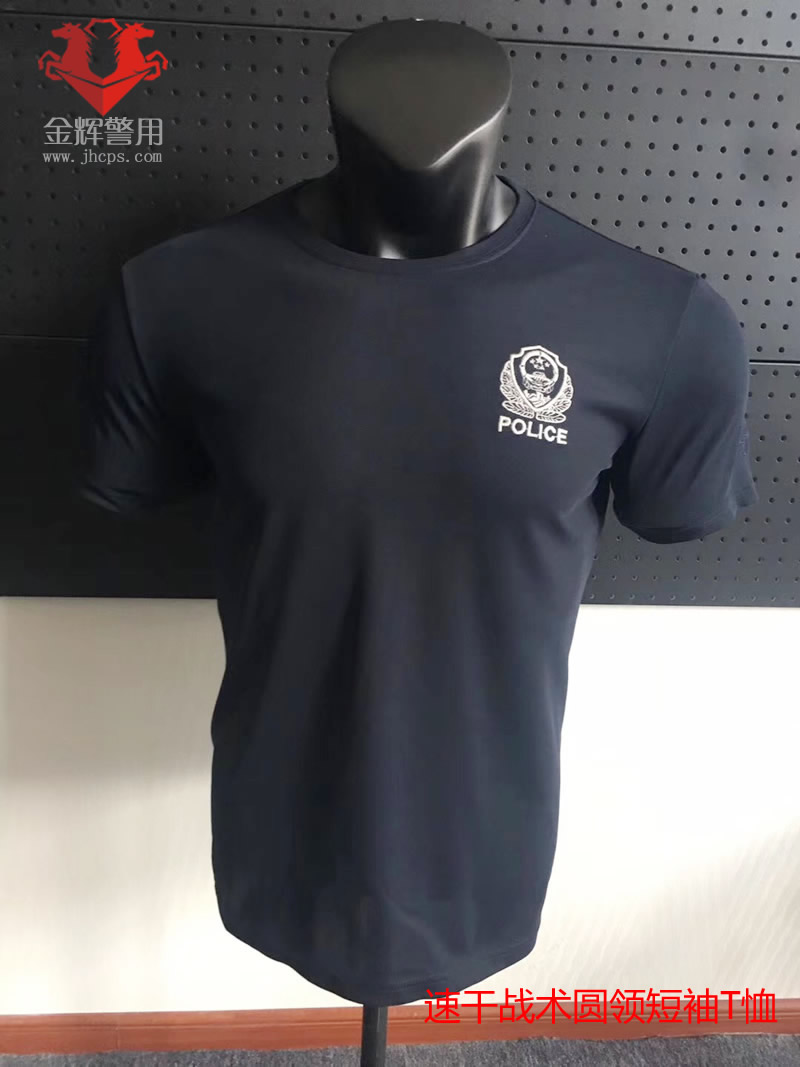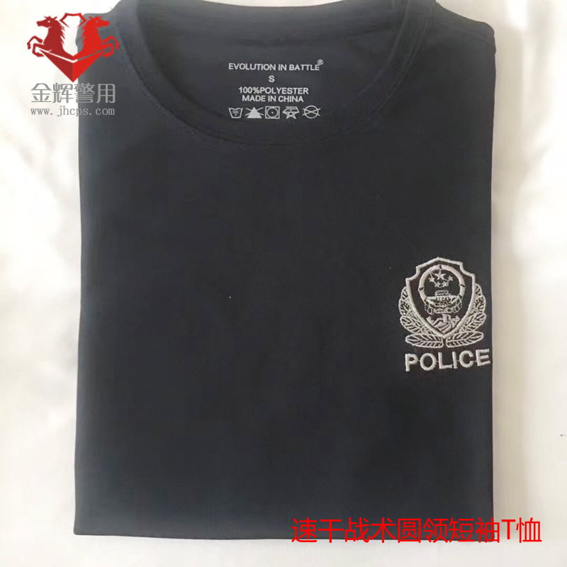 警察刺繡警徽圓領短袖T恤 速幹警察短袖T恤 刺繡警徽短袖T恤(xù)衫 公安戰訓T恤(xù)