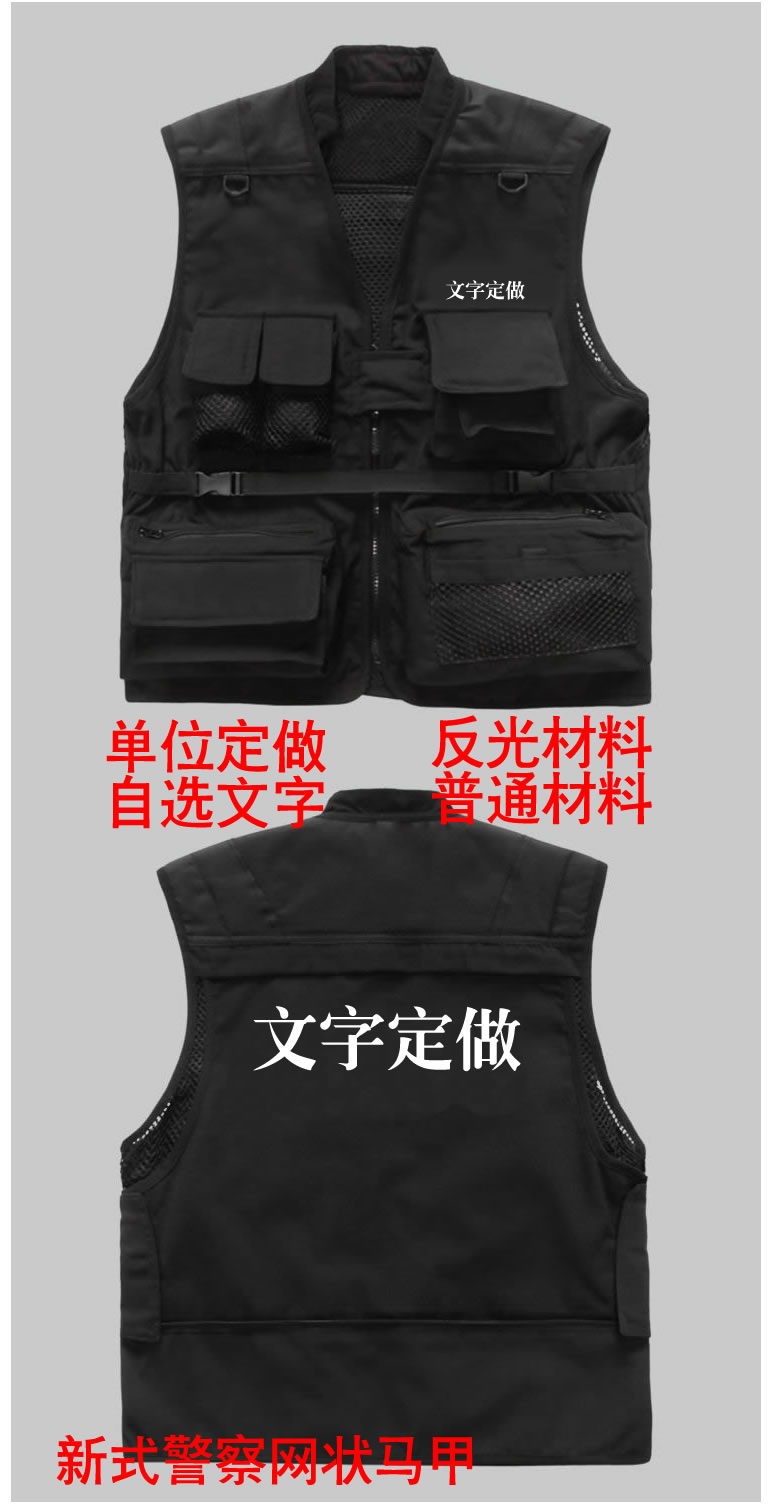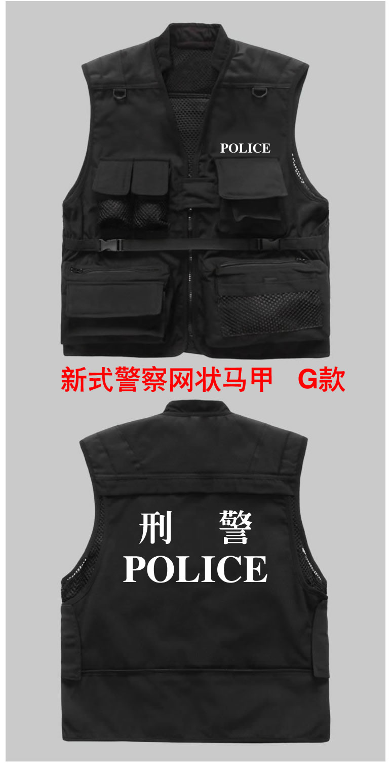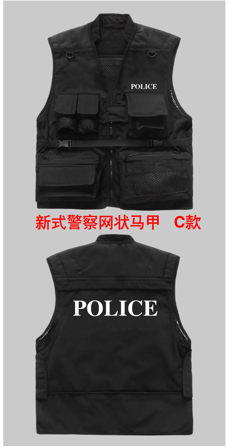 新款警察多功能馬甲為滿足警察(chá)特殊工作需求和展示警察的特殊身份而設計,型號多(duō)種自由選擇,同時可以(yǐ)按各單位要求定做,文字和顏色都可以選擇,同時提供(gòng)反光材料。