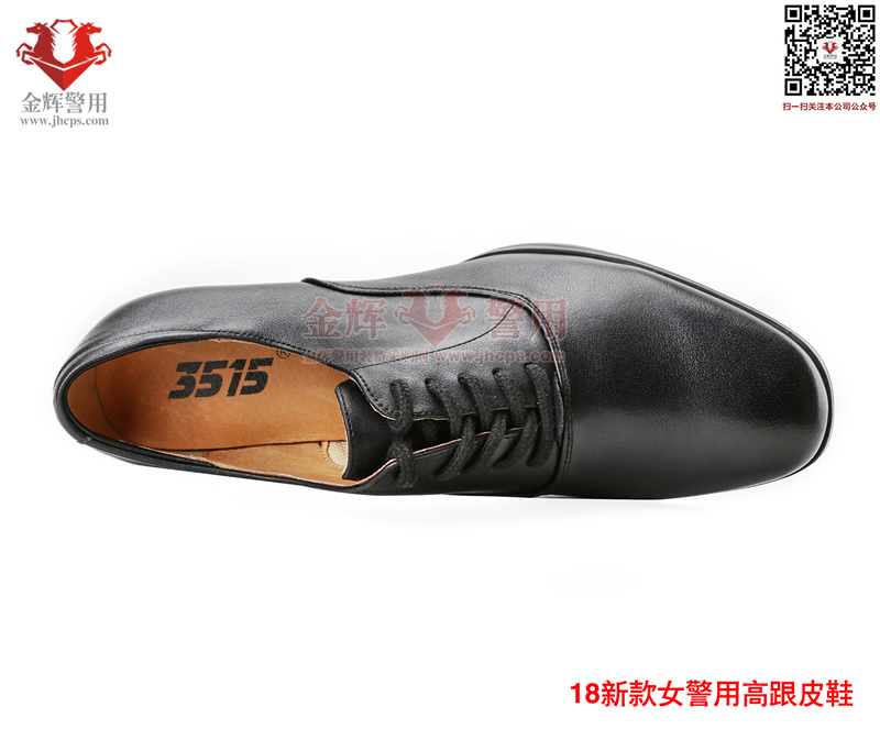 產品名稱(chēng):18款警用女單皮鞋 鞋麵材(cái)料:頭層(céng)優質牛皮 內裏材料:透氣豬(zhū)皮內裏、皮(pí)質鞋墊、 鞋底:發泡橡膠(jiāo)大底 跟高:4cm馬(mǎ)蹄跟 尺碼:標準皮鞋碼35號至40號