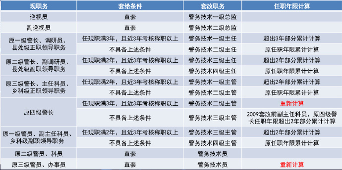 警銜套改已經幾個年頭了,下麵我們(men)通過表格方式來向大家介紹套改職務和薪酬標準。