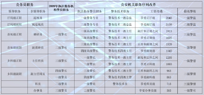 警銜套改職務和工(gōng)資對照表(圖)