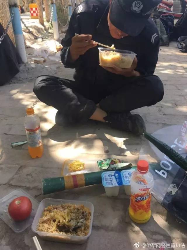 吃飯也是中國(guó)人最講究的,不過新疆巡查執法民警可沒那麽多心思顧忌這些禮儀(yí)了(le)。放在地下就(jiù)吃,太餓了(le),有的甚至吃飯的時間都不及時(shí)。別以為人家肚子不餓。30秒(miǎo)出(chū)警到達現場是什麽概念(niàn)?